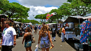 We ventured out to the flea market at the Aloha Stadium in Honolulu today. As Dave would say, "There were lots of fleas at the market." It was crowded and very hot with almost no wind, so the flavored slushies were greatly appreciated. It's good to be back on the windward side of the island.